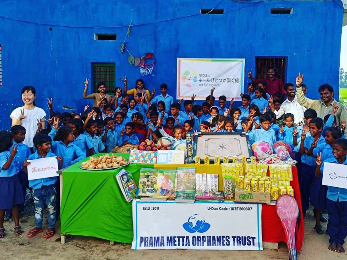 ボールをはじめ、絵本などの教材や食料品の支援をさせていただきました。